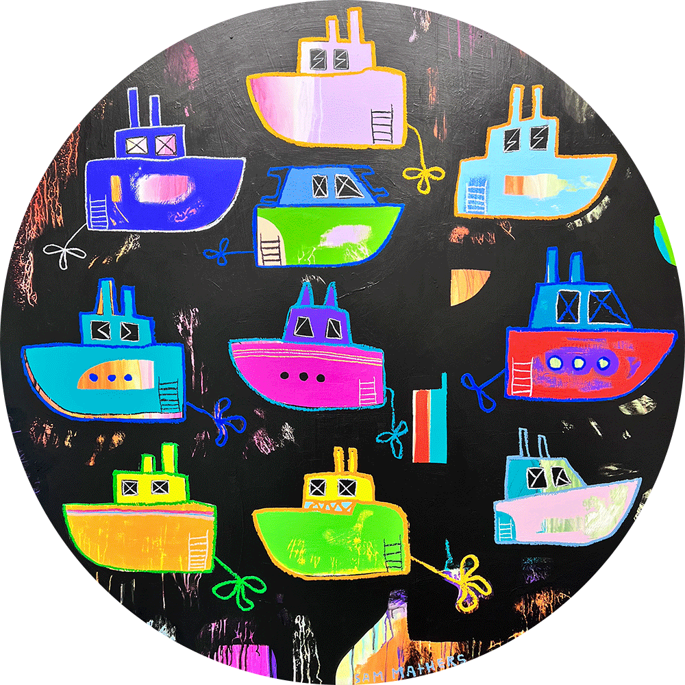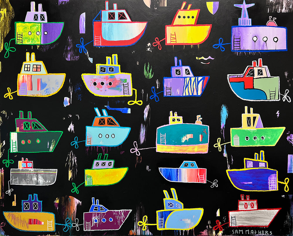 Psychedelic Boats in the moonlight